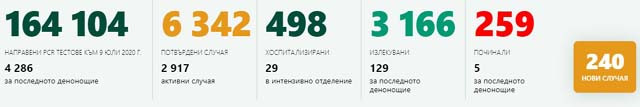 Рекордните 240 нови случая на лица, диагностицирани с COVID-19 за едно денонощие са установени днес. Извърешни са 4286 PCR теста. Положителните проби са 5,6% от общия брой изследвани през денонощието.