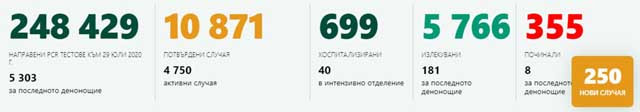 Осем са смъртните случаи през денонощието. С това общият брой на починалите лица, при които е бил доказан COVID-19, става 355.