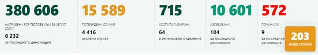203 са новодиагностицираните с коронавирусна инфекция лица през изминалото денонощие. PCR тестовете, направени през последните 24 часа, са 6232.