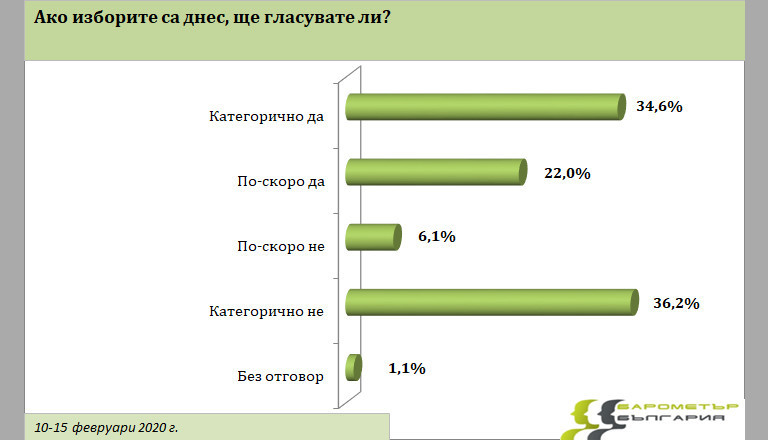 34,6% от анкетираните са катеторични, че ще гласуват. От "Барометър" посочват, че те формират твърдия електорат на всяка партия - не се влияят от политическа реклама, имат категорични убеждения и са готови да гласуват независимо от ситуацията.