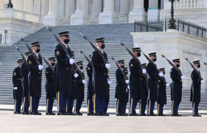Традиционните десетки хиляди зрители няма да присъстват поради ограниченията от Covid за сметка на около 25 000 войници от Националната гвардия. Ройтерс сравнява столицата с „призрачен град“ и „охранявана крепост“ почти 24 часа преди церемонията.