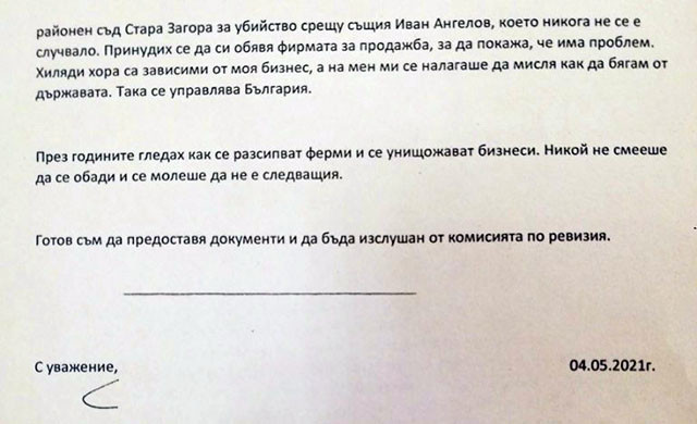 „С премиера сме били на неформални срещи. Всички се бяха уплашили, тъй като един известен бизнесмен се изправи пред премиера и каза, че нищо не работи в България както трябва. Той се опълчи срещу него. След това го погнаха. Всички останали не смеят да кажат нещо лошо, за да не ги погнат и тях“, разказа земеделецът.