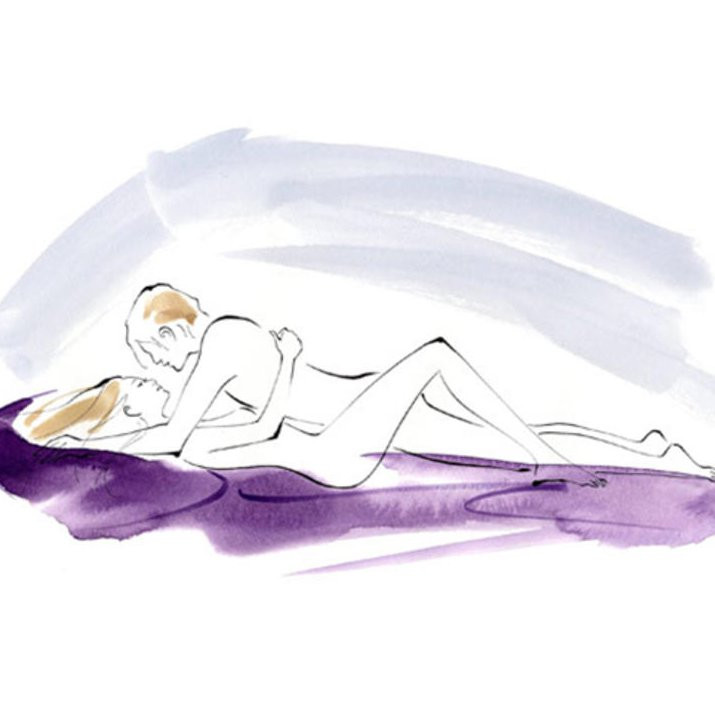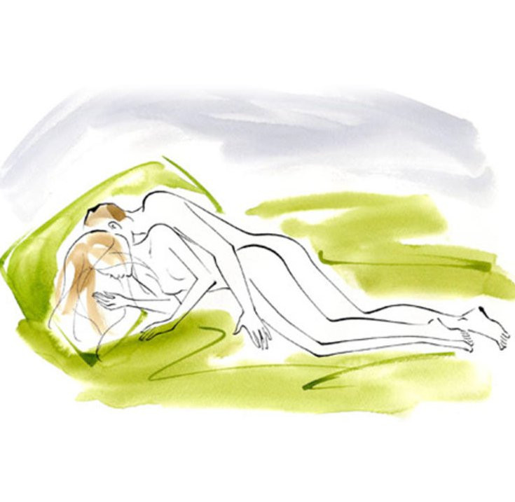 Двамата лежите обърнати на една страна, вие свивате леко колене, той влиза отзад.