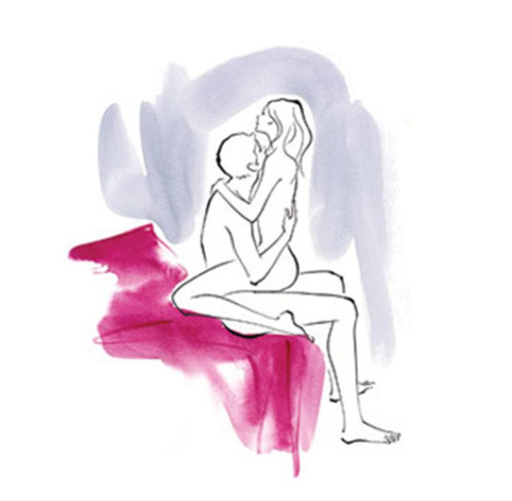 Той е на стол или на ръба на легло, а вие сядате с лице към него в скута му.