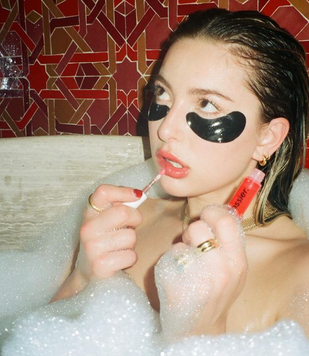 Ив е едно от новите рекламни лица на козметичния бранд Glossier и позира предизвикателно във вана, пълна с пяна, държейки чаша с шампанско. Кадрите бяха публикувани в нейния Instagram профил, предава Daily Mail.