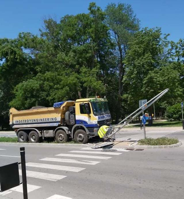Камион се удари в стълб за да не блъсне дете в Аспарухово (СНИМКИ)